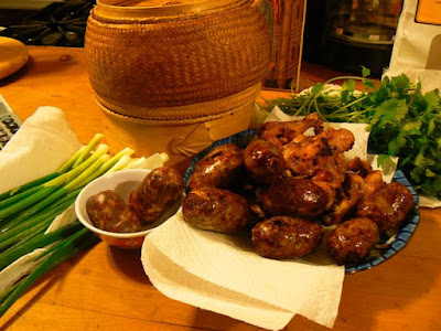 I recently read in that online Lao cooking site aptly named Lao Cook that he couldn't find any sausage casings locally. All that fresh seafood and organic cuts of meat but no sausage casings, well at least stranded here in the landlocked Rocky Mountains that's one thing we do have.